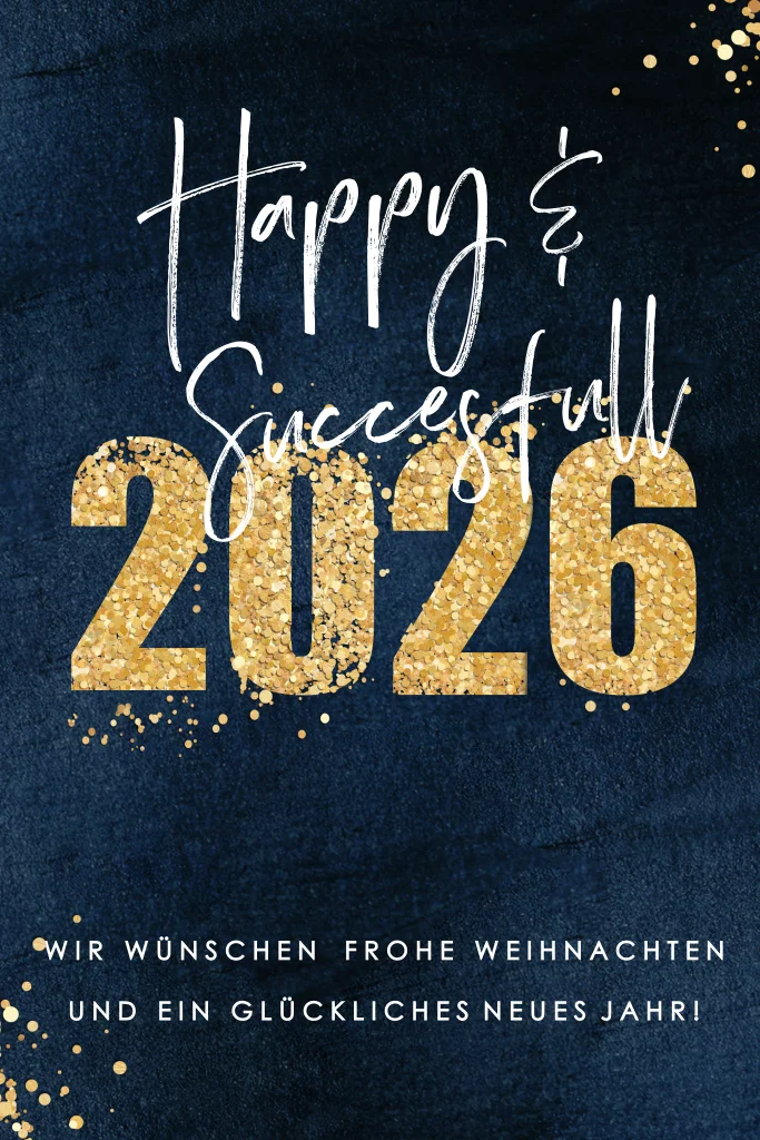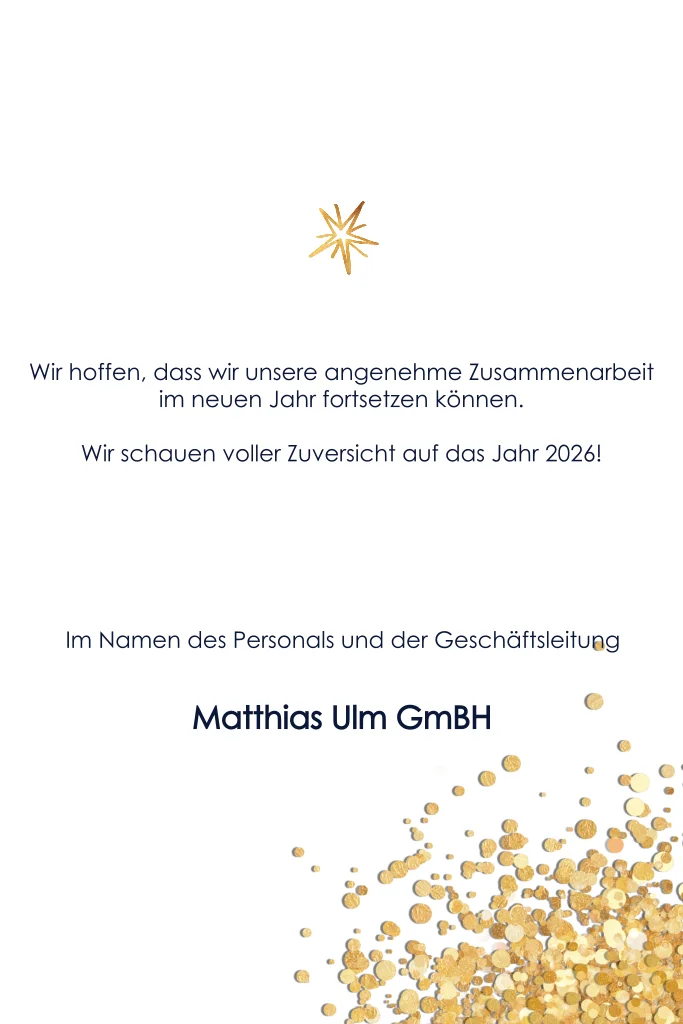 Geschäftliche Weihnachtskarte in Dunkelblau mit goldener Jahrzahl