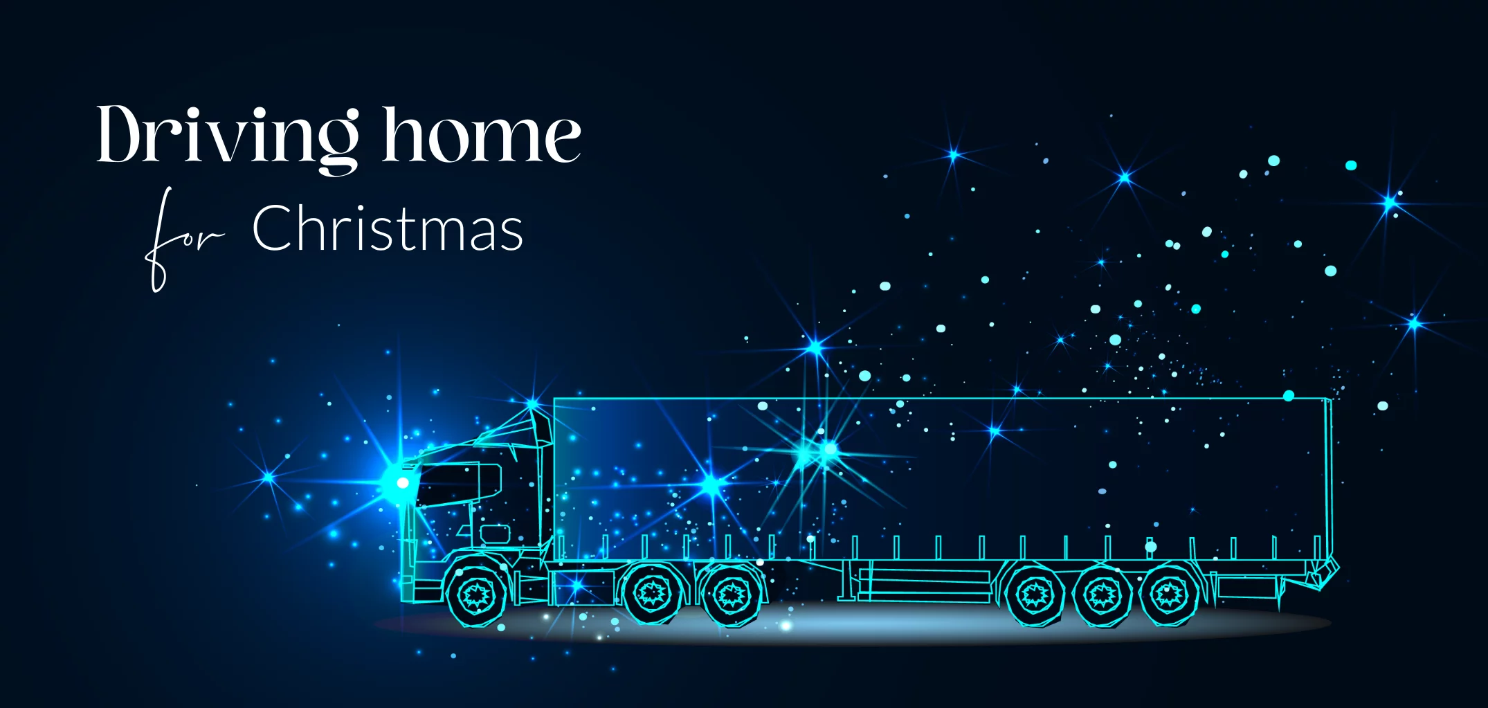 Geschäftliche Weihnachtskarte mit leuchtendem Lastwagen für die Transportbranche