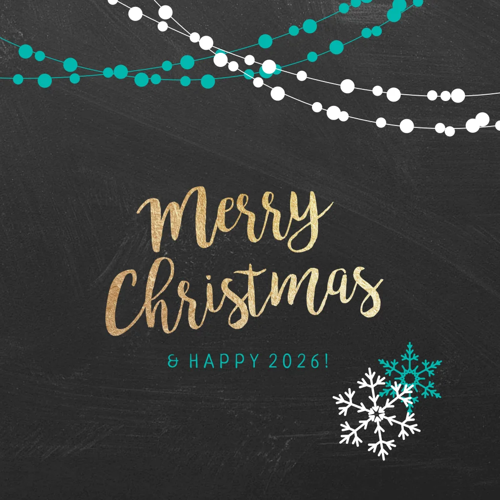 Geschäftliche Weihnachtskarte mit Tafelhintergrund und Firmenfoto