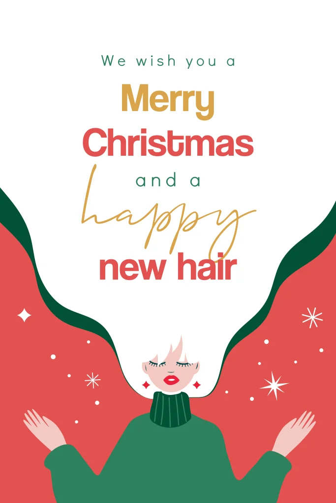 Merry Christmas and happy new hair Weihnachtskarte. Ideaal für Friseur- und/oder Beautysalons.