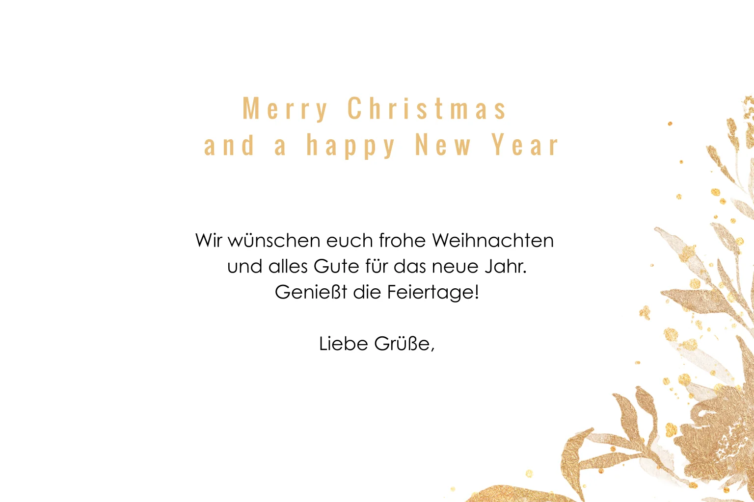 Versende eine superschöne, edle Weihnachtskarte und wünsche deinen Liebsten ein frohes Weihnachtsfest und ein erfolgreiches neues Jahr. Wer heutzutage nach Inspirationen sucht, findet unendlich viele Ideen und Möglichkeiten, weswegen wir fantastische Designvorlagen wie diese für Weihnachten erstellt haben. Gestalte die Karte nach Wunsch!