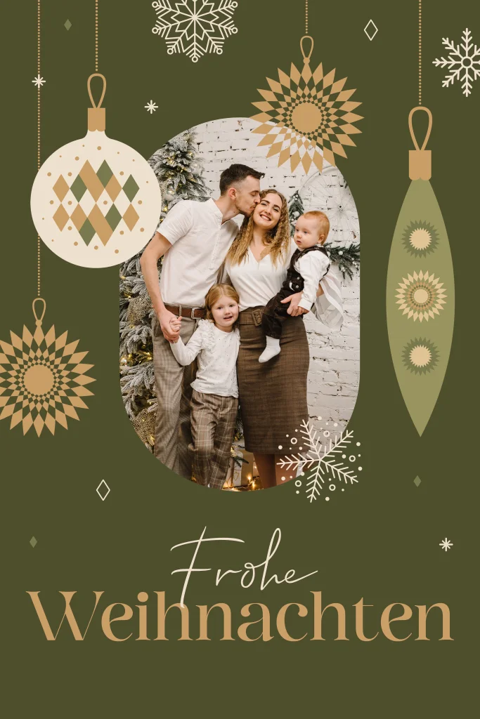 Weihnachtskarte mit Baumschmuck und eigenem Bild