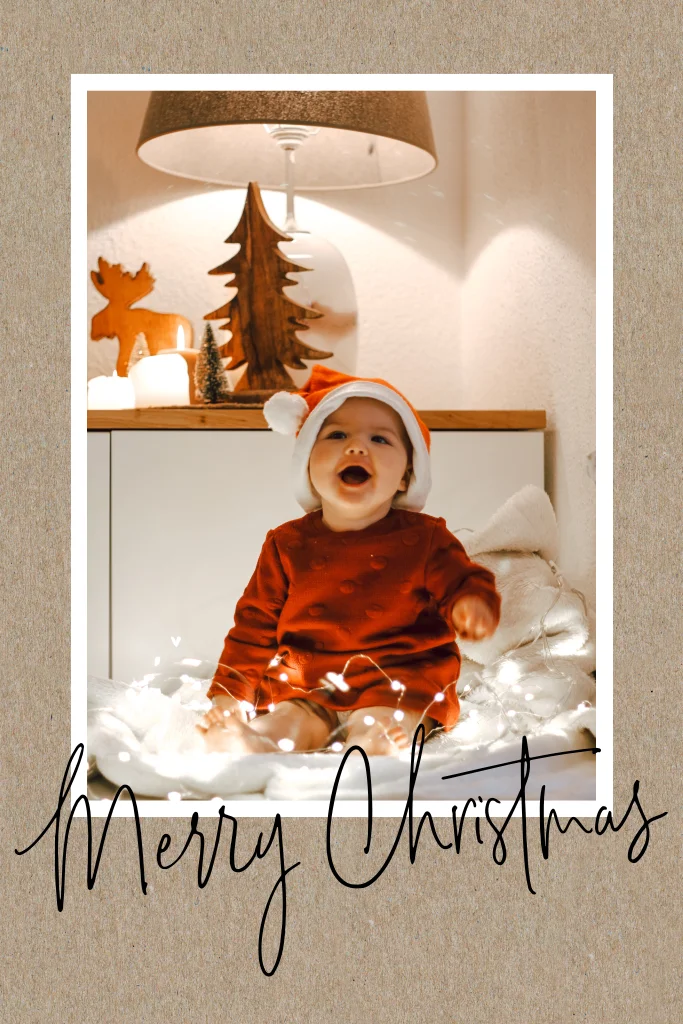 Weihnachtskarte im Kraftlook mit Foto in weißem Rahmen