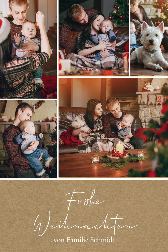Weihnachtskarte mit Fotocollage auf kraftlook Hintergrund