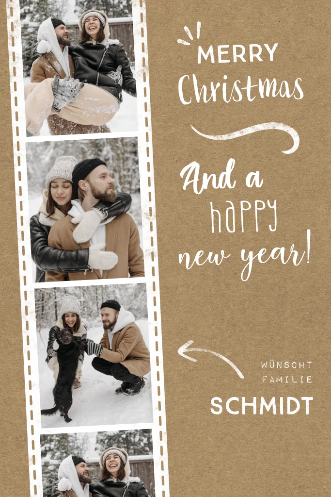 Weihnachtskarte mit Fotostreifen Kraft-Look