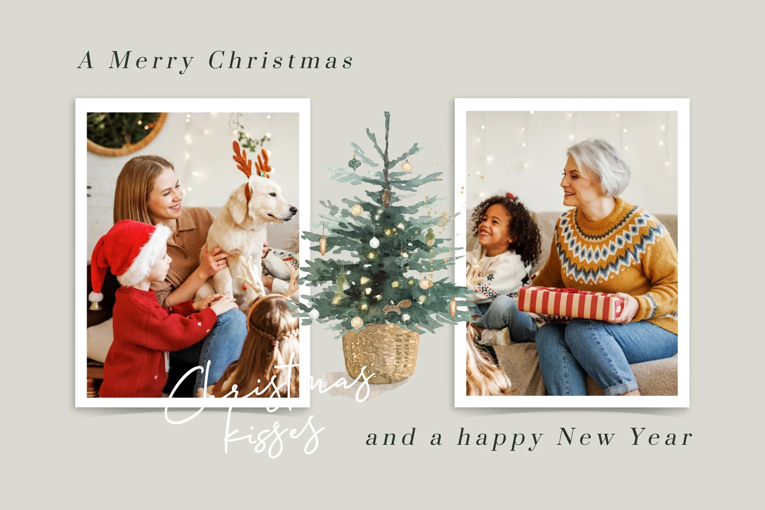 Weihnachtskarte mit Goldfolie, runden Ecken und Fotos