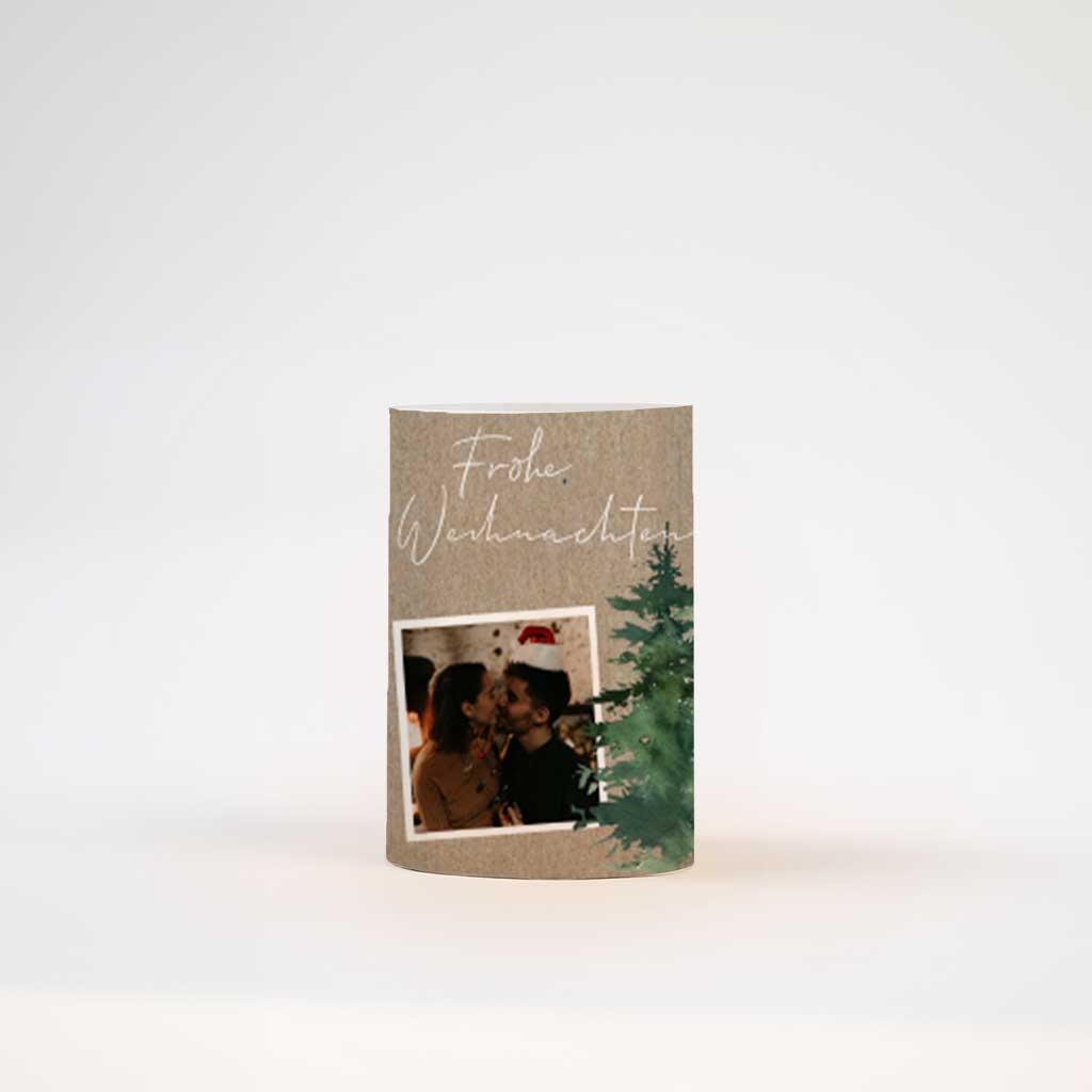 Windlicht zu Weihnachten mit Foto und Tannenbäumen