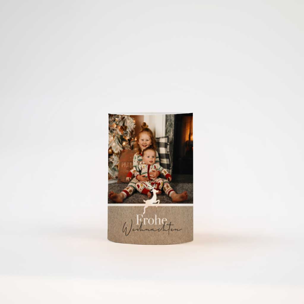 Windlicht zu Weihnachten im Kraftlook mit Foto und Rentier
