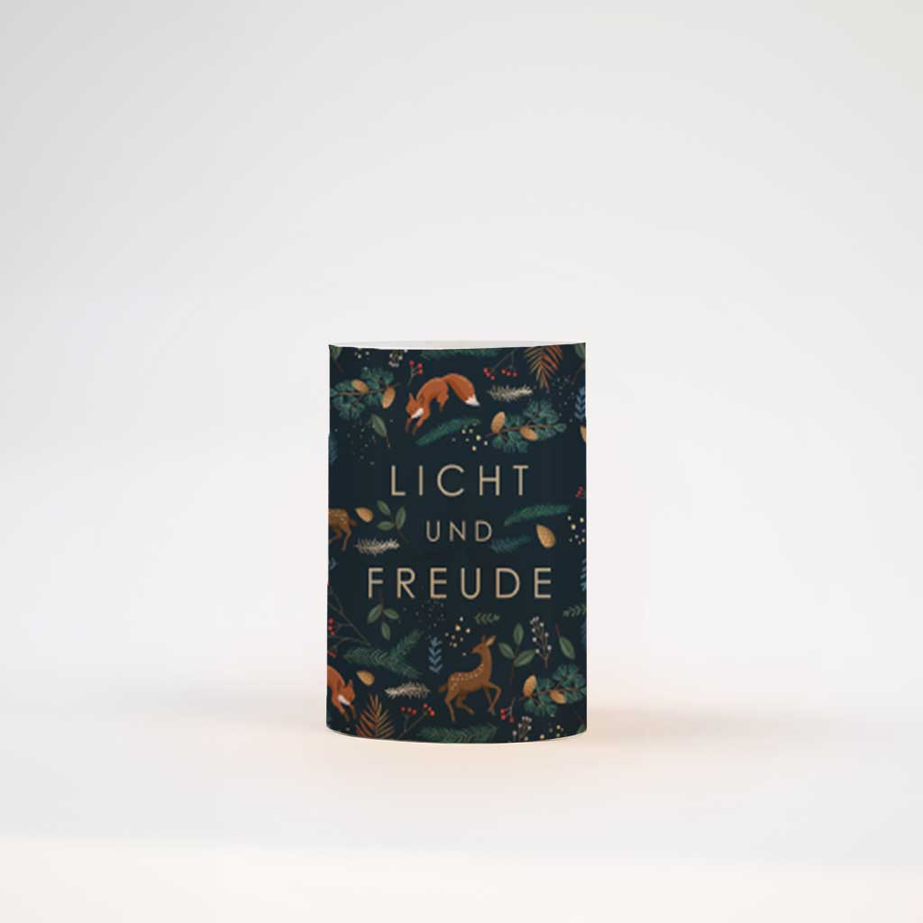 Windlicht Weihnachten mit Waldtieren, Zweigen und Blättern